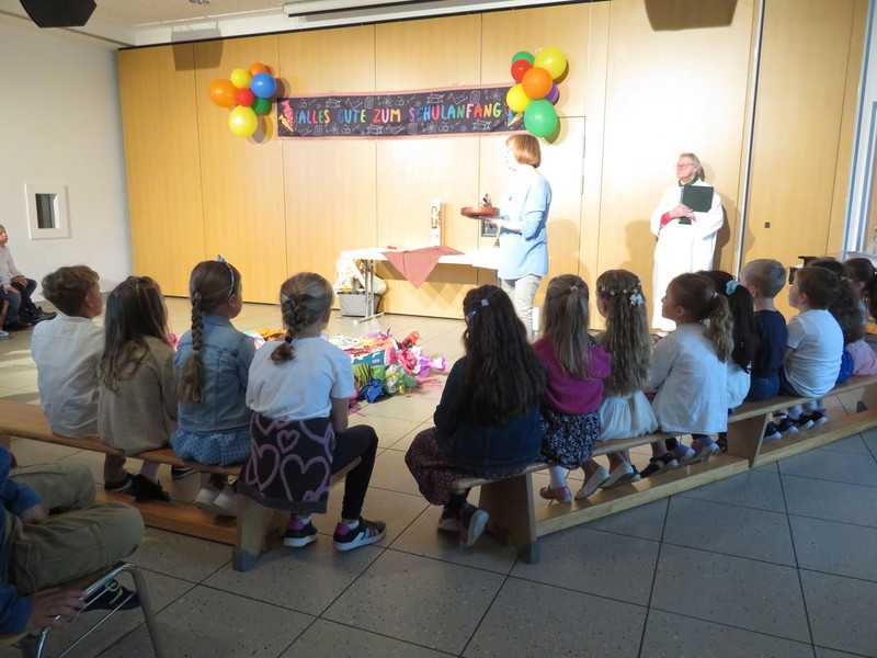 Die Aula war gut gefüllt und mit 28 "neuen" Schulanfängern konnten wir gemeinsam unseren Anfangsgottesdienst feiern.